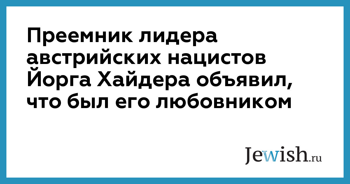 Преемник лидера австрийских нацистов Йорга Хайдера объявил, что был его любовником