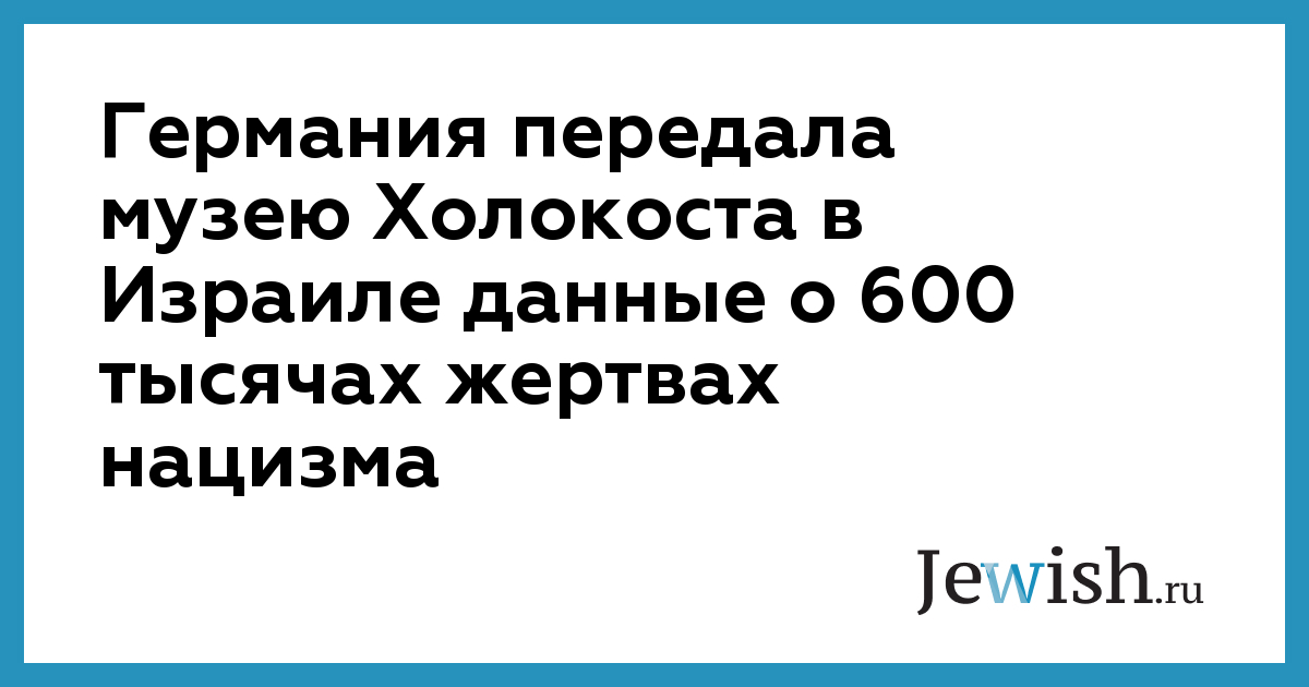 Правительство Германии вручило израильскому национальному мемориалу памяти жертв холокоста персональные данные 600 тысяч евреев, проживавших в нацистской Германии.