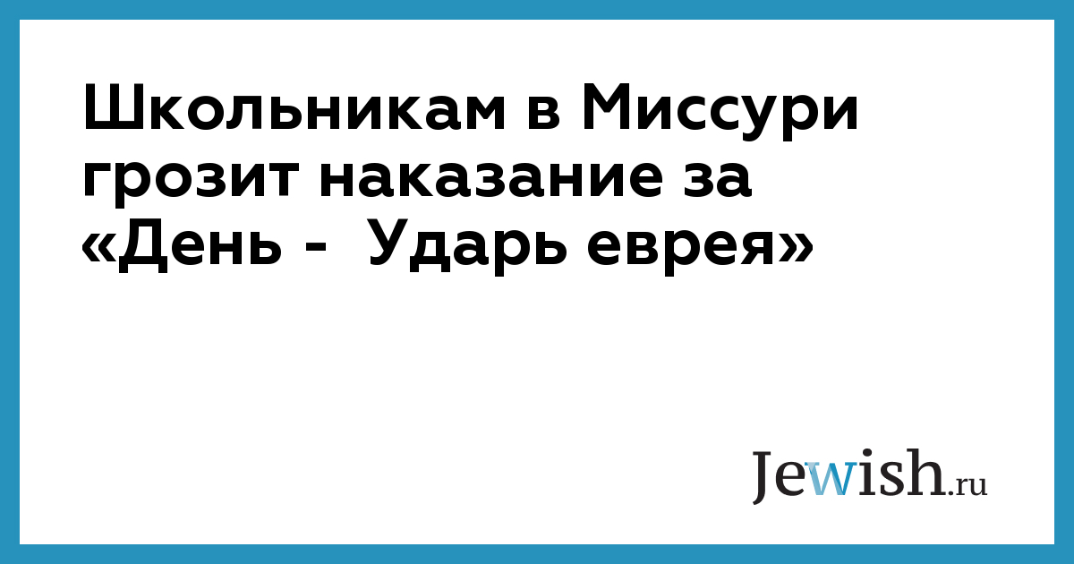 Школьникам в Миссури грозит наказание за «День — Ударь еврея»
