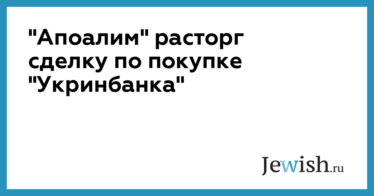"Апоалим" расторг сделку по покупке "Укринбанка"