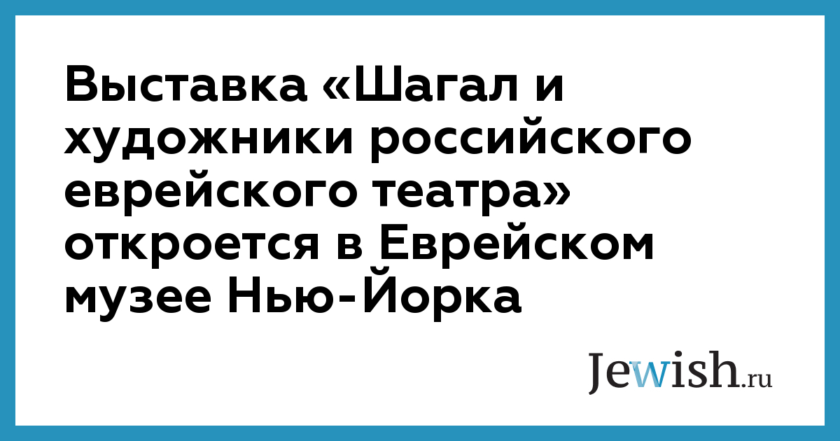 Выставка «Шагал и художники российского еврейского театра» откроется 9 ноября в Еврейском музее Нью-Йорка. На экспозиции будут представлены более 200 произведений искусства, большая часть которых ранее нигде не экспонировалась.