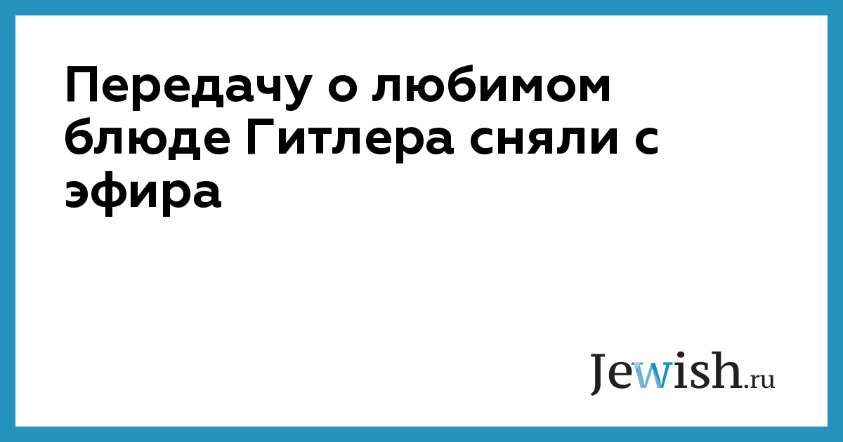 Бельгийский общественный телеканал VRT отказался от планов показать кулинарную передачу "Plat Prefere" ("Любимое блюдо"), которую авторы хотели посвятить любимому блюду Адольфа Гитлера, передает в понедельник агентство France Presse.
