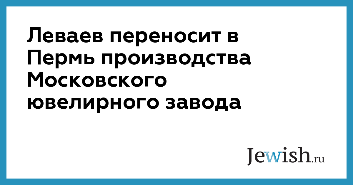 Леваев переносит в Пермь производства Московского ювелирного завода