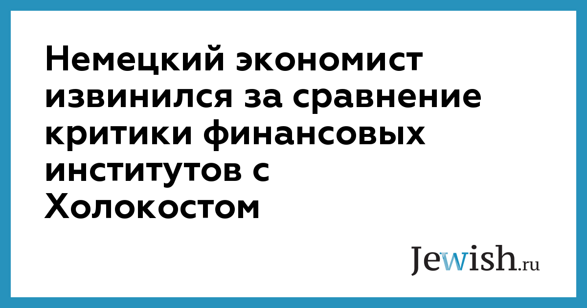 Немецкий экономист извинился за сравнение критики финансовых институтов с Холокостом