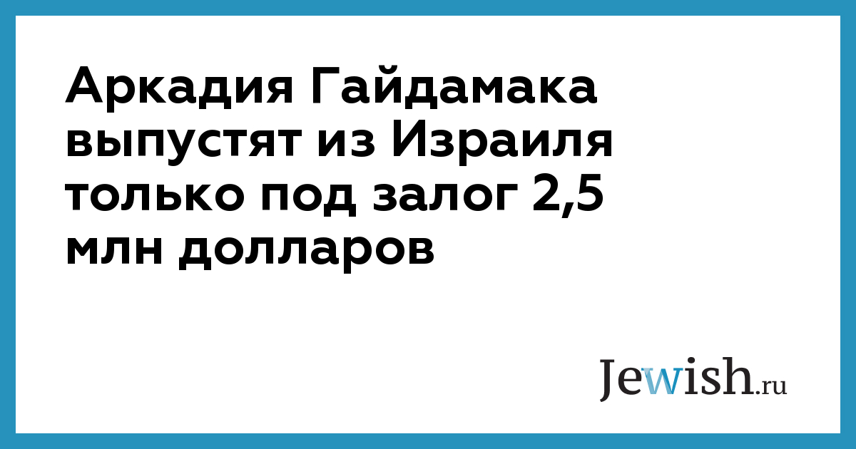 Во вторник, 4 ноября, мировой суд израильского города Петах-Тиква обязал предпринимателя Аркадия Гайдамака внести судебный залог в размере 2,5 миллиона долларов США на случай выезда из страны, пишет издание The Jerusalem Post. Представители прокуратуры полагают, что данная сумма будет гарантией того, что Гайдамак не покинет Израиль.