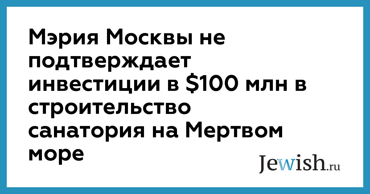 Мэрия Москвы не подтверждает инвестиции в $100 млн в строительство санатория на Мертвом море