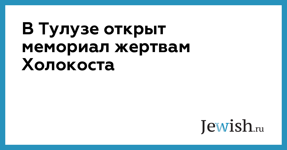 В Тулузе открыт второй во Франции мемориал жертвам Холокоста, массового уничтожения еврейского населения европейских стран нацистами в годы Второй мировой войны, сообщает радио "Маяк".