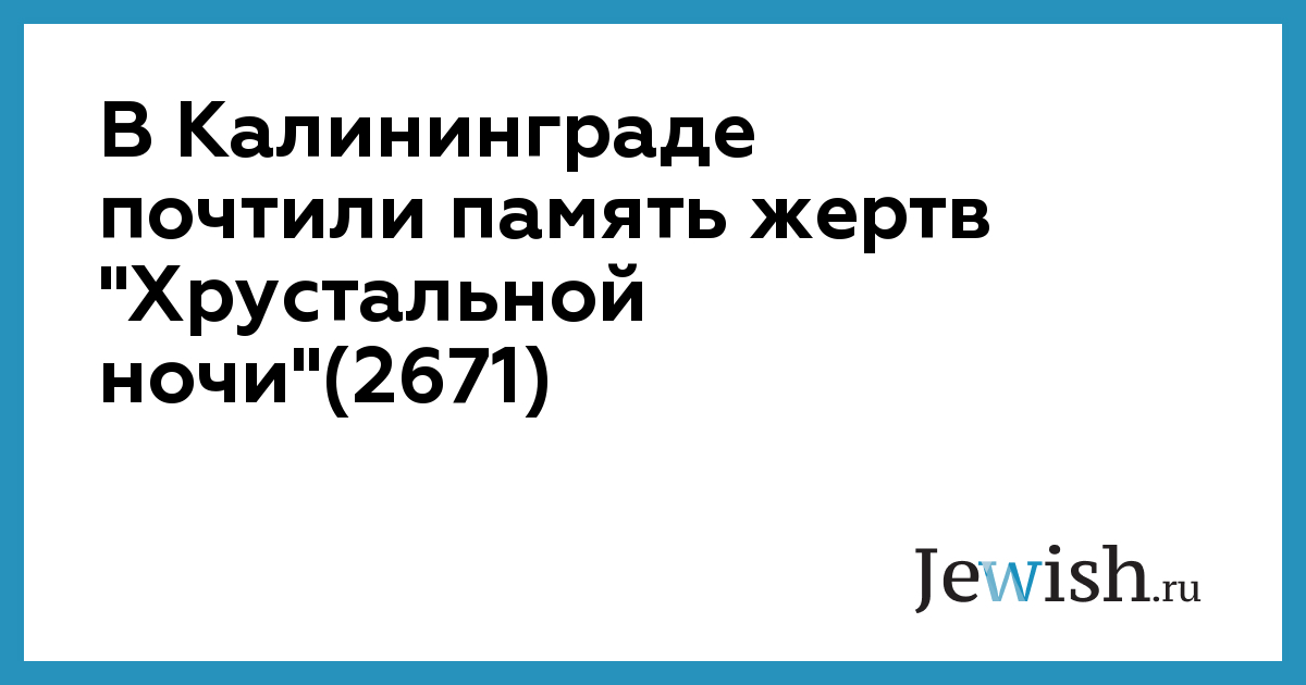 В Калининграде вспоминают 70-ю годовщину Хрустальной ночи, сообщает телеканал "Россия" — Калининград. Это дата «чёрных событий», произошедших в Германии в ночь с 9-го на 10-е ноября 1938-го года. Тогда прошли масштабные еврейские погромы. Погиб 91 человек.