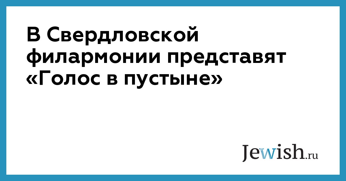 В Свердловской филармонии представят музыкальный спектакль про исход евреев в пустыню, сообщили агентству ЕАН в пресс-службе музыкального учреждения. Беатрис Рейбель и Жюльен Пeти создали необычный спектакль — «Голос в пустыне». Источником вдохновения авторов стали библейские тексты.