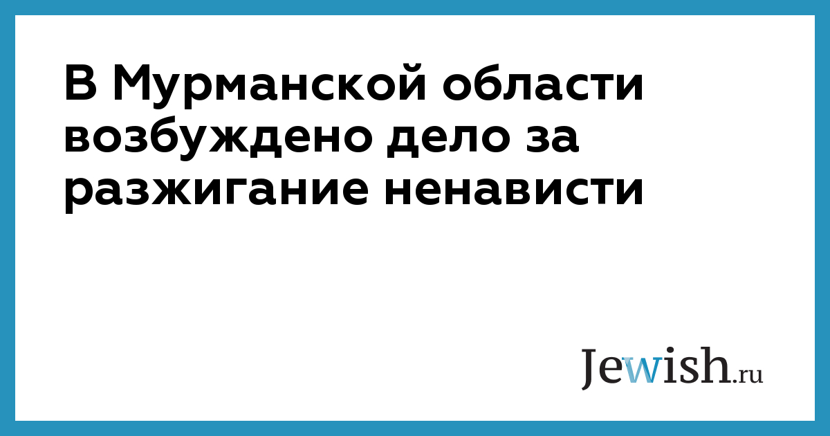 В Мурманской области возбуждено дело за разжигание ненависти