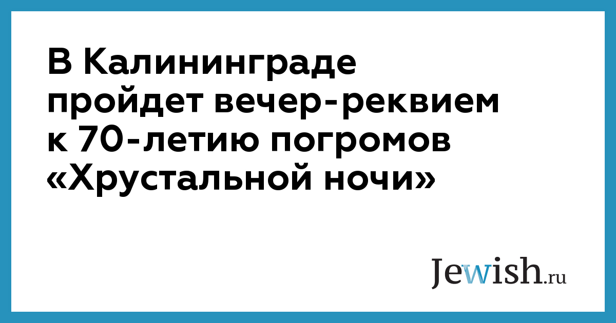 16 ноября, в Международный день толерантности, в Калининграде состоится вечер-реквием, посвященный 70-летию «Хрустальной ночи». Он пройдет в рамках международных акций в память о трагическом событии, которое стало началом Холокоста — массового уничтожения евреев нацистами. Организована мемориальная акция при поддержке министерства культуры области.