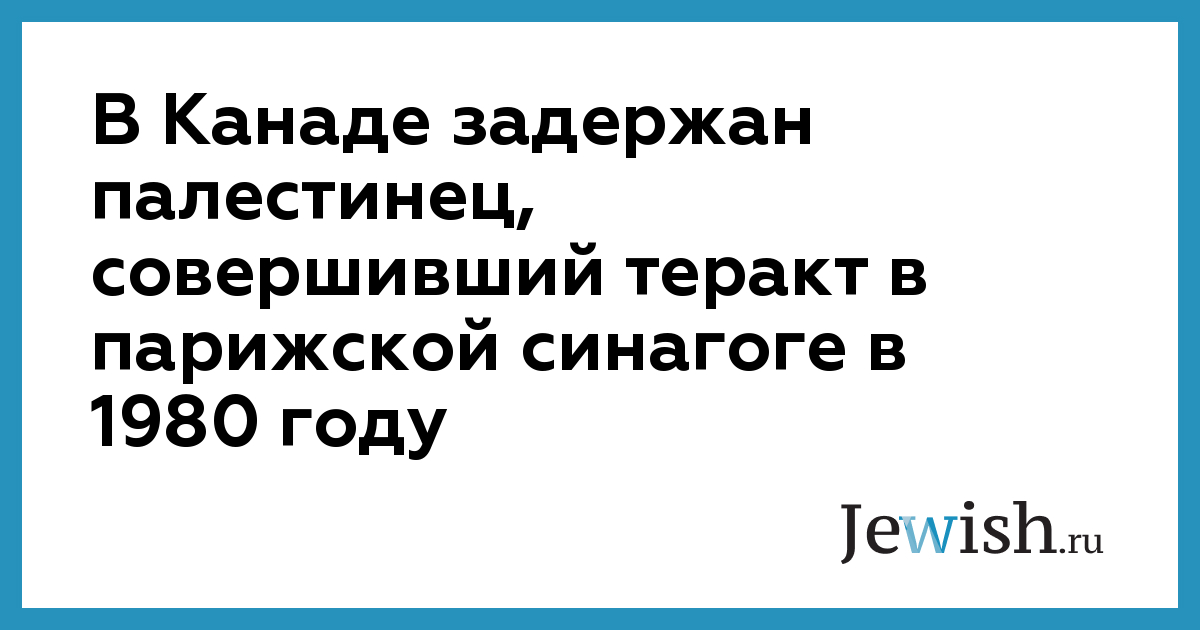 Французский еженедельник L'Express сообщил о том, что канадские силы безопасности задержали палестинца, подготовившего теракт в синагоге в еврейском квартале Парижа в 1980 году, сообщает MIGnews.