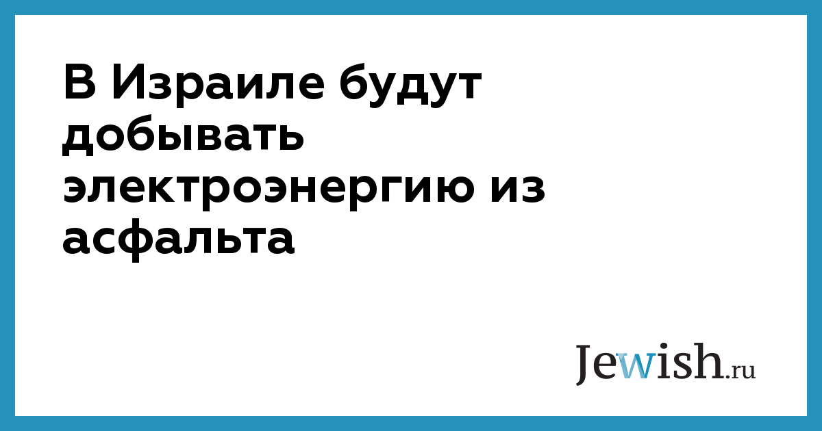 В Израиле будут добывать электроэнергию из асфальта