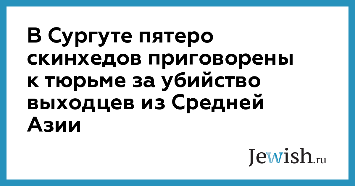 В Сургуте закончился громкий процесс по делу скинхедов. Пятеро молодых людей признаны виновными в смерти жителей среднеазиатских республик и приговорены к различным срокам лишения свободы — от 8,5 до 9 лет. Есть среди осужденных и несовершеннолетние, которые будут отбывать наказание в детской воспитательной колонии.