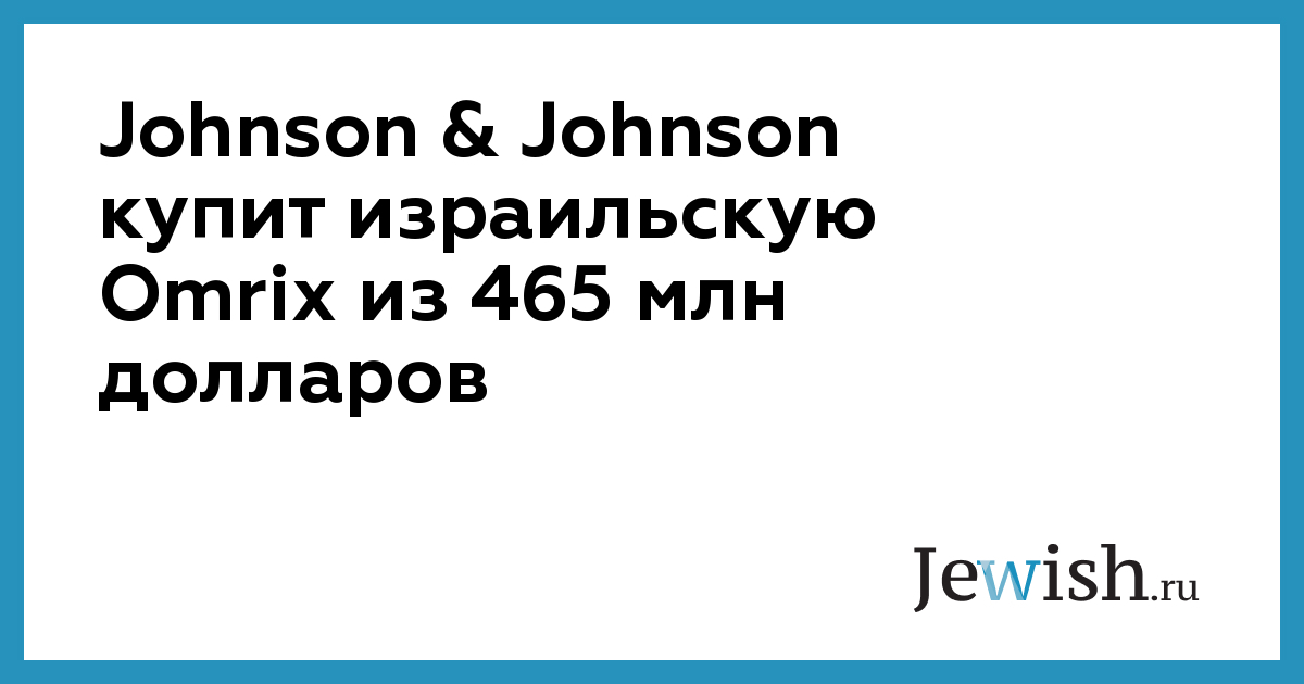 Johnson & Johnson купит израильскую Omrix из 465 млн долларов