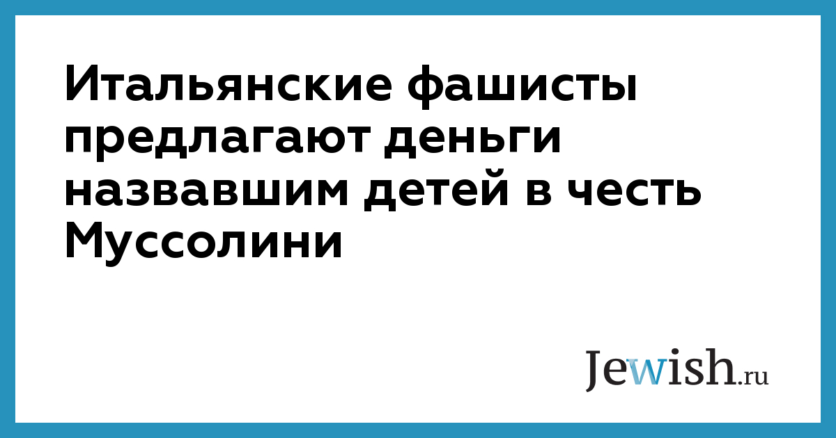 Итальянские фашисты предлагают деньги назвавшим детей в честь Муссолини