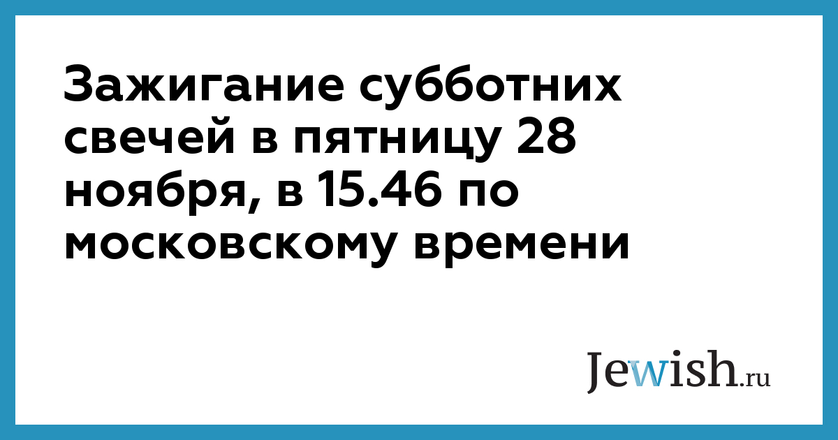 Зажигание субботних свечей в пятницу 28 ноября, в 15.46 по московскому времени