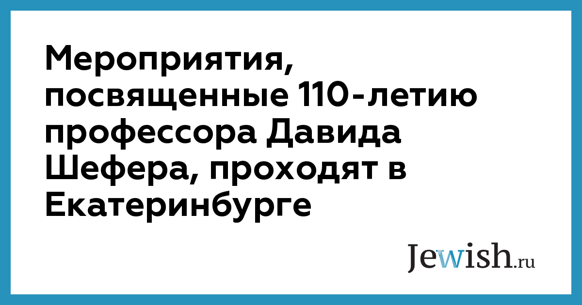 Мероприятия, посвященные 110-летию профессора Давида Шефера, проходят в Екатеринбурге