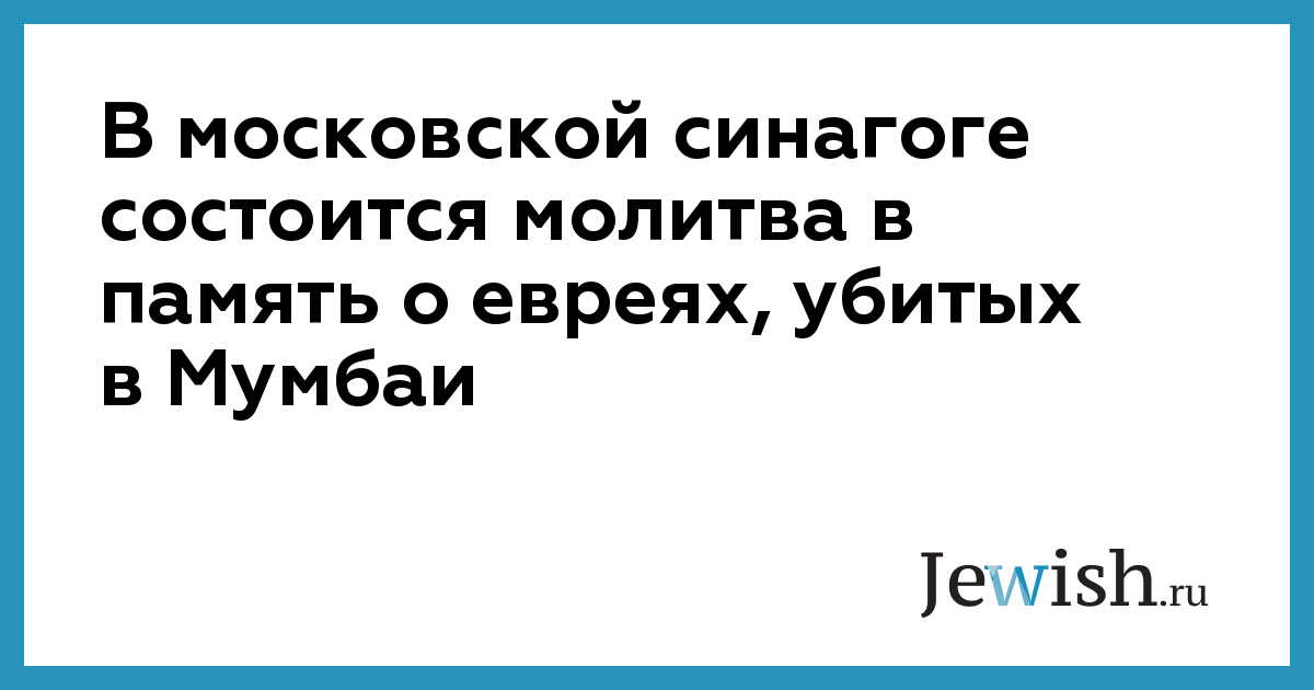 Общая молитва в память о евреях, убитых террористами в центре еврейского движения ХАБАД в индийском городе Мумбаи, состоится во вторник в синагоге Московского еврейского общинного центра, сообщает "Интерфакс".