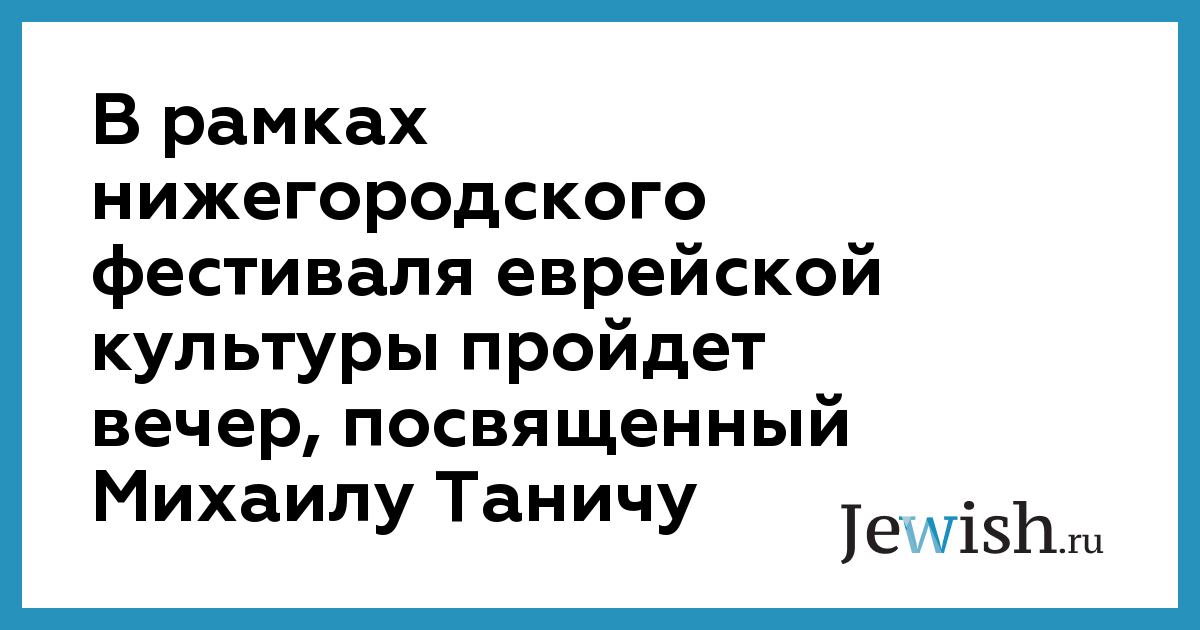 В рамках нижегородского фестиваля еврейской культуры пройдет вечер, посвященный Михаилу Таничу