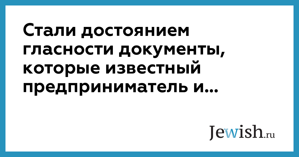 Стали достоянием гласности документы, которые известный предприниматель и...