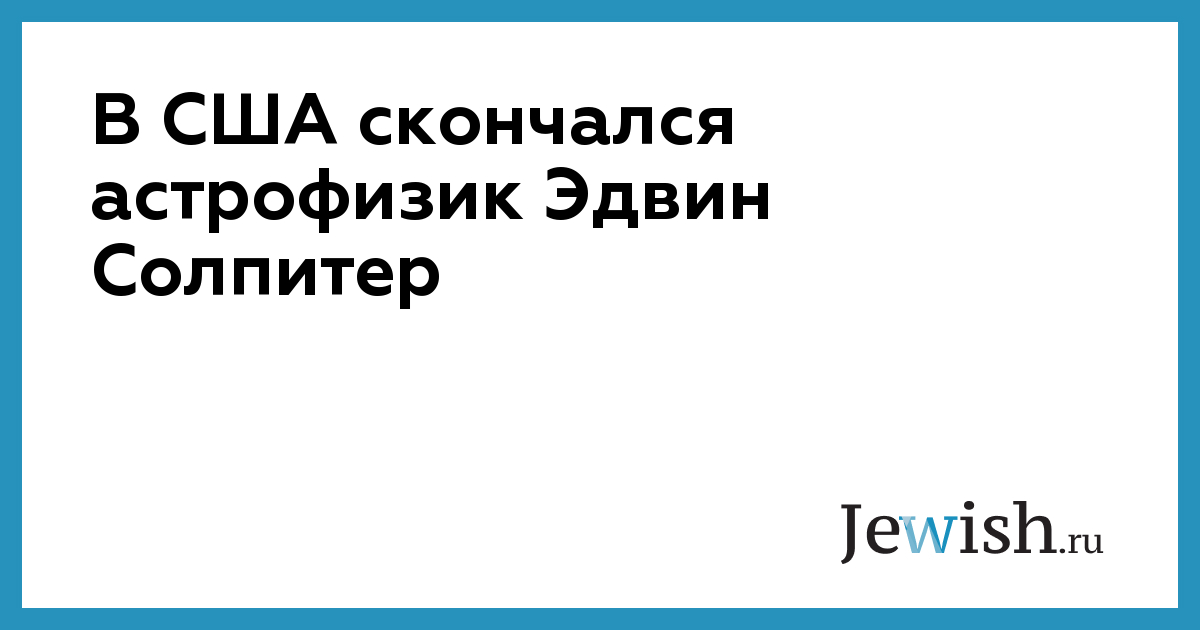 В США на 84-м году жизни скончался один из основоположников современной теории строения и эволюции звёзд Эдвин Солпитер. Как сообщает Associated Press со ссылкой на пресс-службу Корнельского университета, Солпитер, последние месяцы страдавший от лейкемии, умер во вторник у себя дома в Итаке.