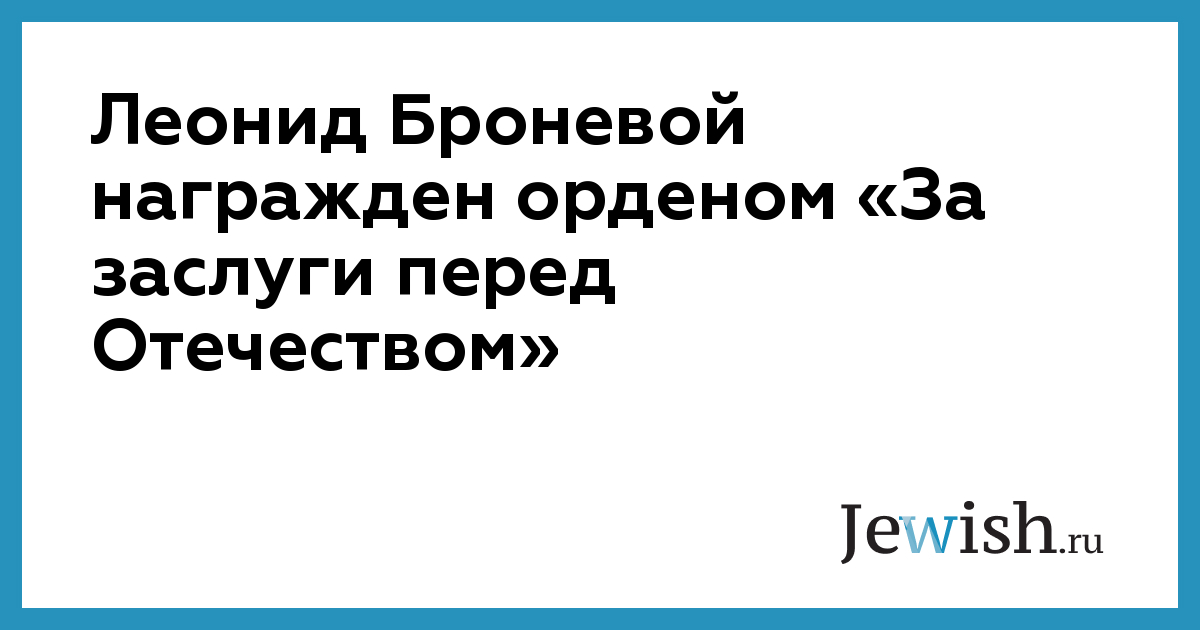 В четверг президент России Дмитрий Медведев наградил актера «Ленкома» Леонида Броневого орденом «За заслуги перед Отечеством» второй степени. Указ президента о награждении размещен на официальном сайте Кремля.