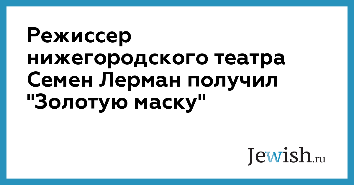 Режиссер нижегородского театра Семен Лерман получил "Золотую маску"