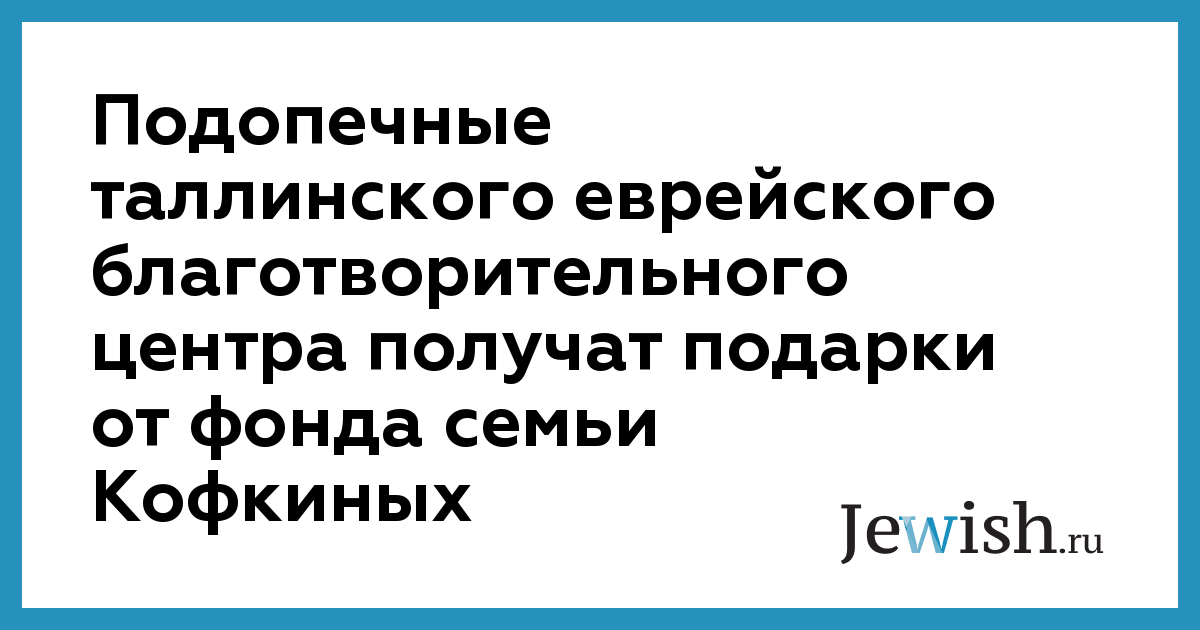 Подопечные таллинского еврейского благотворительного центра получат подарки от фонда семьи Кофкиных