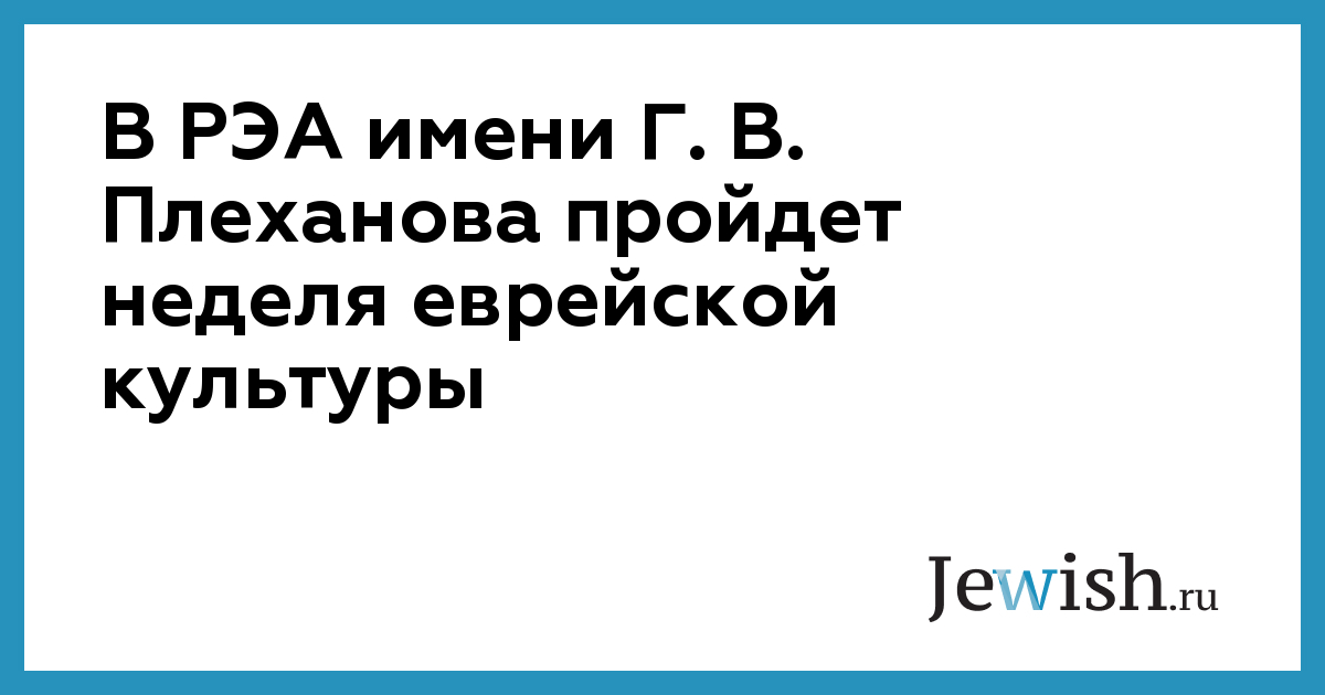 В РЭА имени Г. В. Плеханова пройдет неделя еврейской культуры