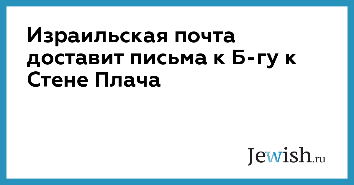 Каждый день почтовые отделения Израиля получают десятки писем со странными адресами: «Дорогому Б-гу», «Небесам», «Б-гу в Иерусалиме», «ангелам», «патриарху Аврааму» — в зависимости от вкусов и фантазии отправителя. Раньше подобные послания оставались на почте в коробках с невостребованной корреспонденцией, однако несколько лет назад Израильская почтовая служба объявила, что все письма, адресованные Б-гу, будут доставлены к Стене Плача и вложены в расщелины между ее огромными камнями.