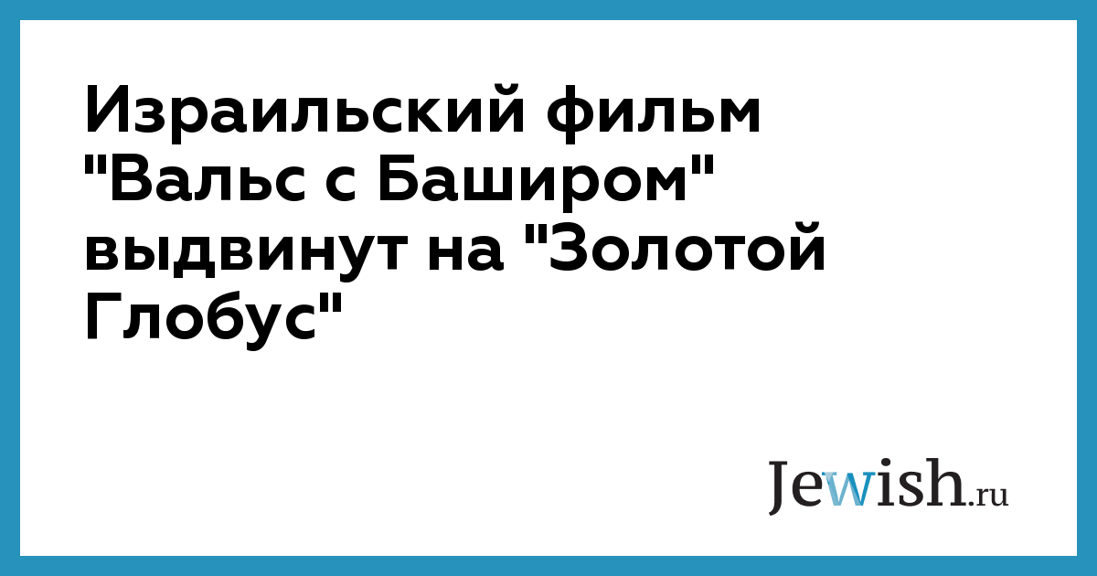 Израильский фильм "Вальс с Баширом", режиссера Ари Фульмана номинирован на "Золотой Глобус" – вторую после "Оскара" по значимости в мире кинематографа премию, в номинации "лучший иностранный фильм". Об этом сообщает сегодня, 12 декабря, радиостанция "Коль Исраэль".