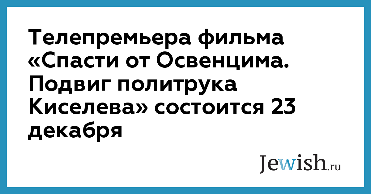 23 декабря в 22-50 на телеканале «Россия» состоится телепремьера документального фильма «Спасти от Освенцима. Подвиг политрука Киселева».