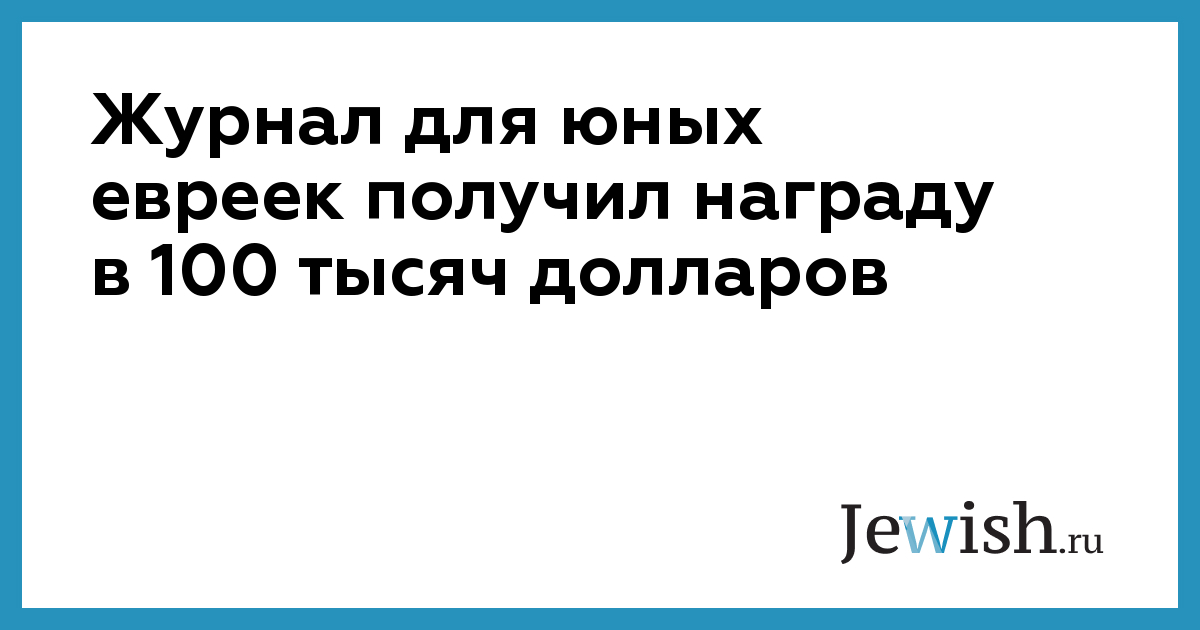 Журнал для юных евреек получил награду в 100 тысяч долларов