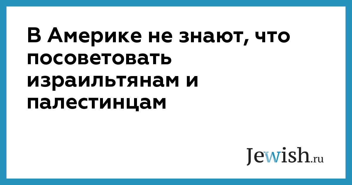 В Америке не знают, что посоветовать израильтянам и палестинцам