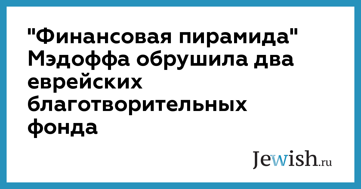 "Финансовая пирамида" Мэдоффа обрушила два еврейских благотворительных фонда