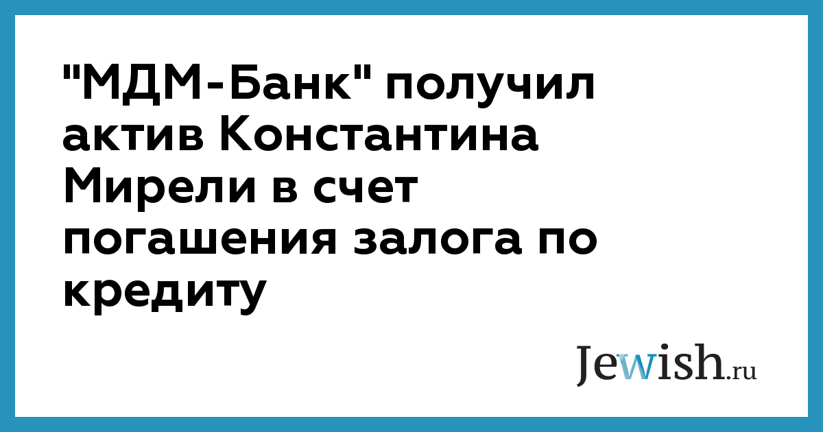 "МДМ-Банк" получил актив Константина Мирели в счет погашения залога по кредиту
