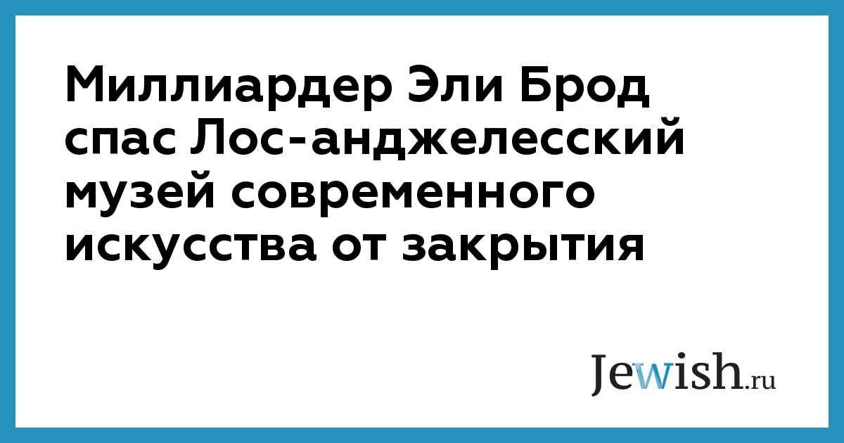Миллиардер Эли Брод спас Лос-анджелесский музей современного искусства от закрытия