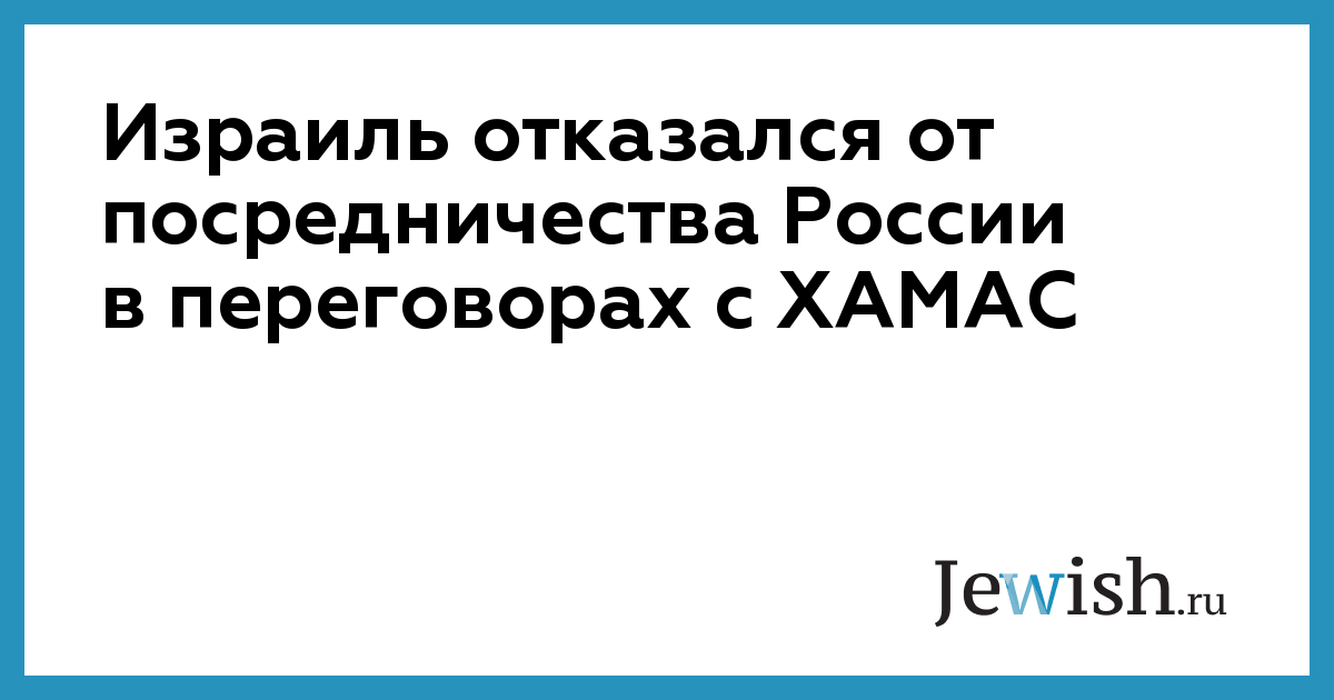 Израиль отказался от посредничества России в переговорах с ХАМАС