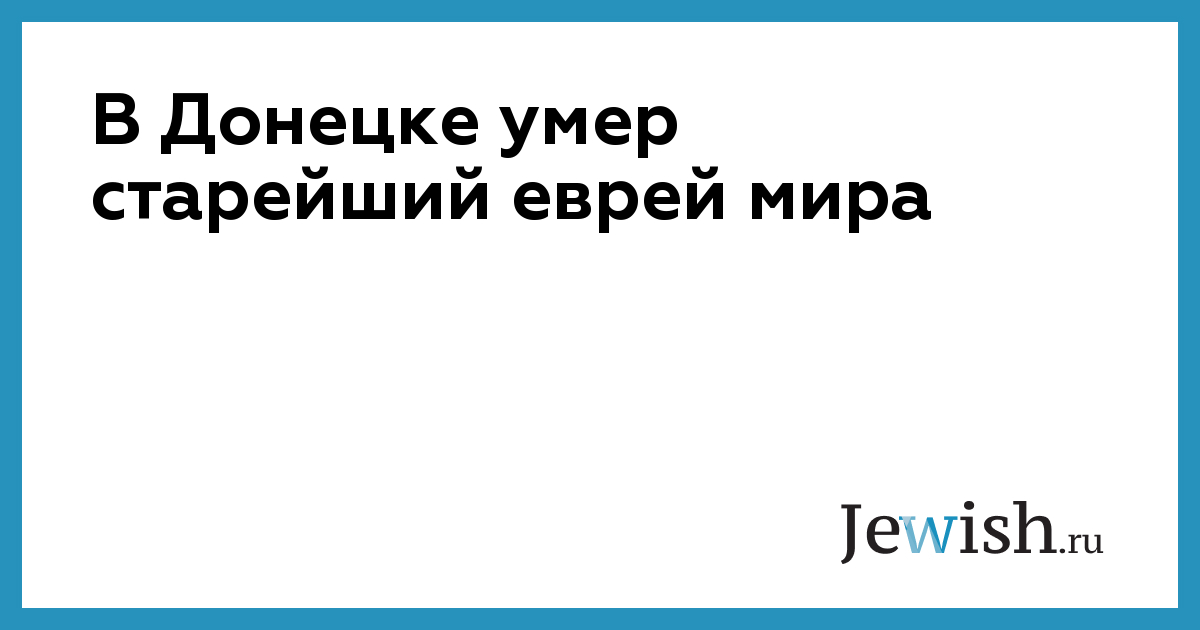 В Донецке умер старейший еврей мира