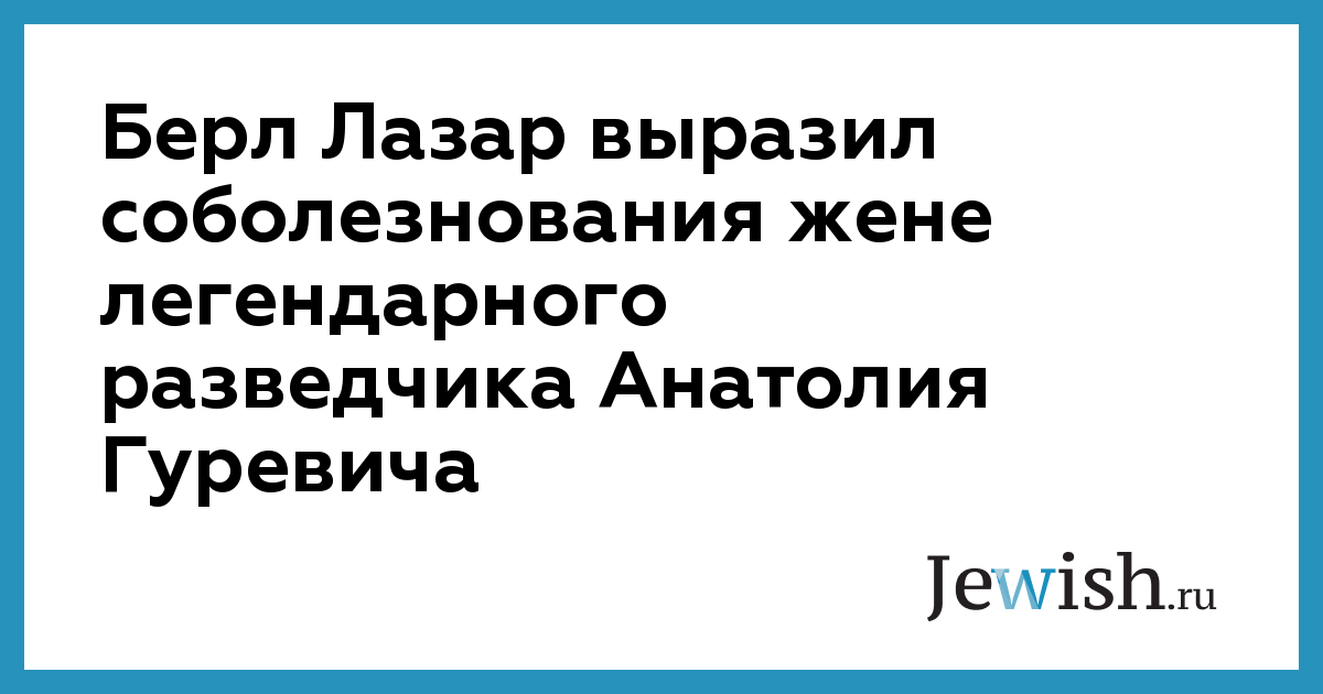 Главный раввин России Берл Лазар направил соболезнования жене Анатолия Гуревича в связи с его безвременной кончиной.