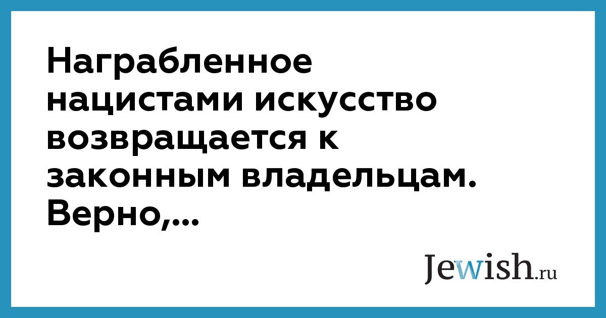 Награбленное нацистами искусство возвращается к законным владельцам. Верно,...