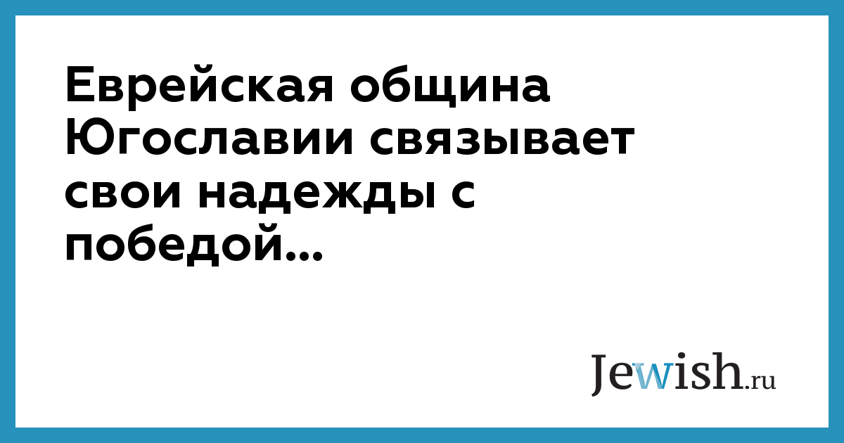 Еврейская община Югославии связывает свои надежды с победой...