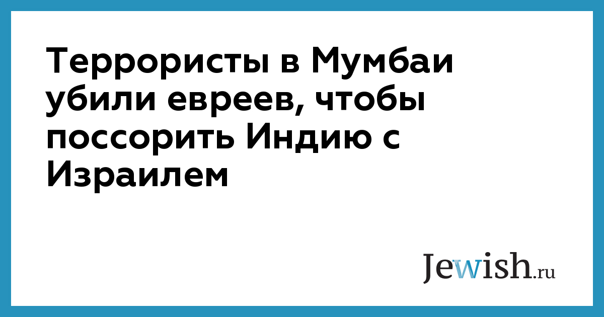 Террористы в Мумбаи убили евреев, чтобы поссорить Индию с Израилем