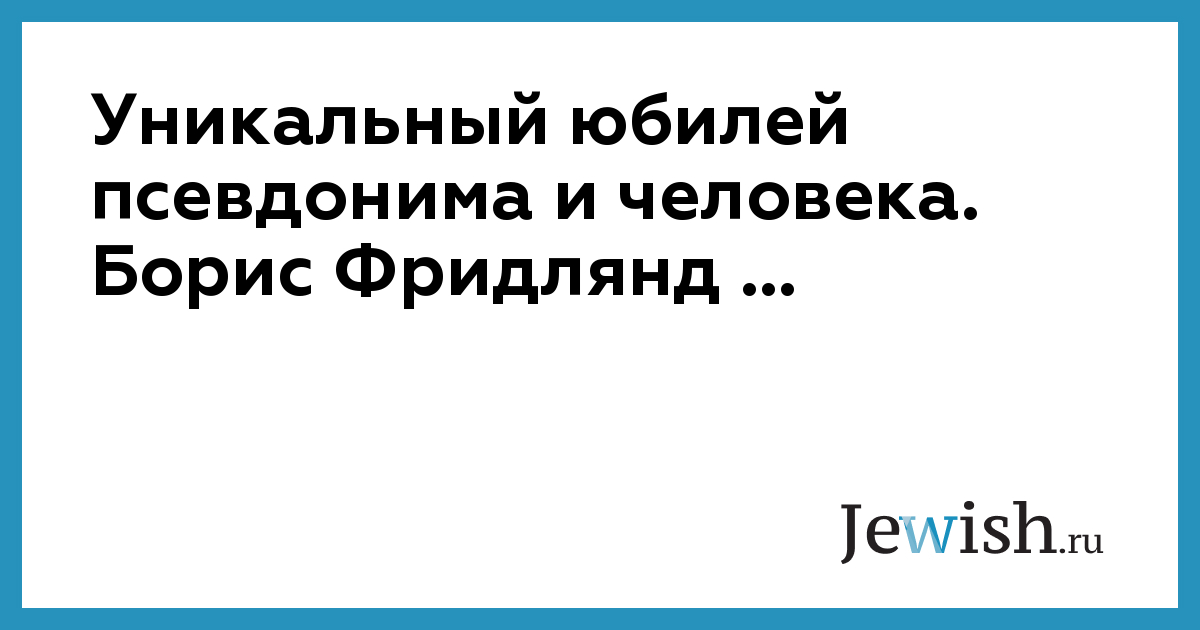 Уникальный юбилей псевдонима и человека. Борис Фридлянд ...