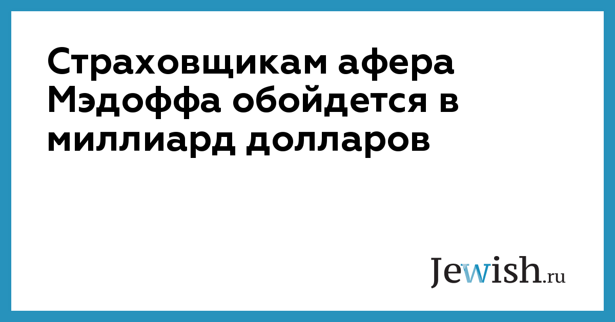 Страховщикам афера Мэдоффа обойдется в миллиард долларов