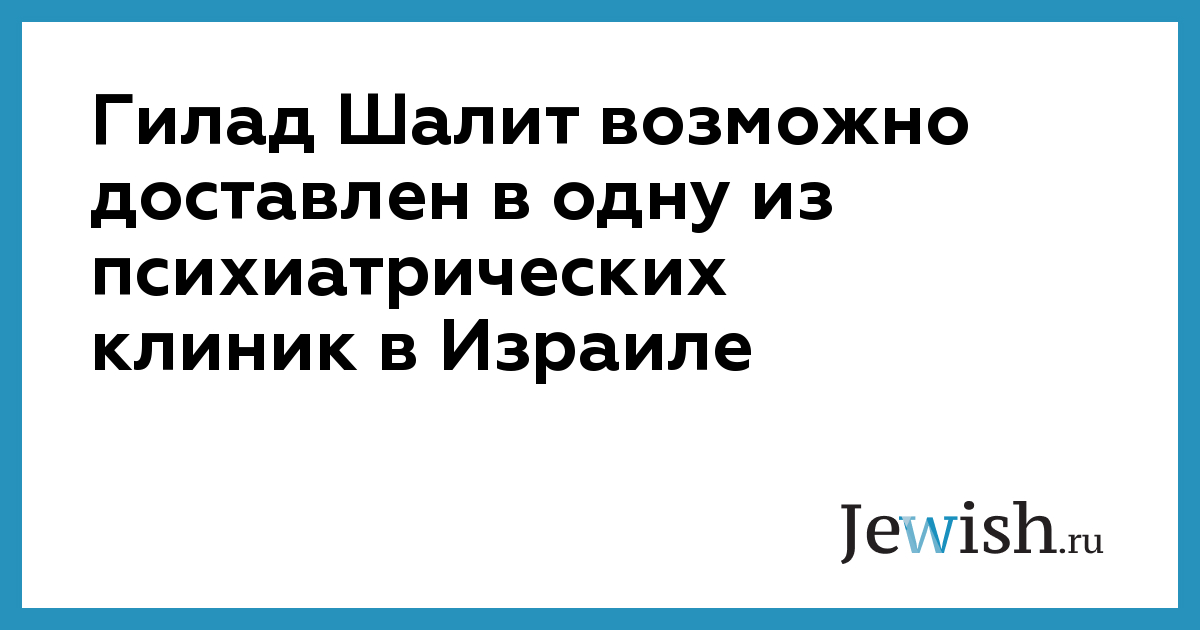 Гилад Шалит возможно доставлен в одну из психиатрических клиник в Израиле