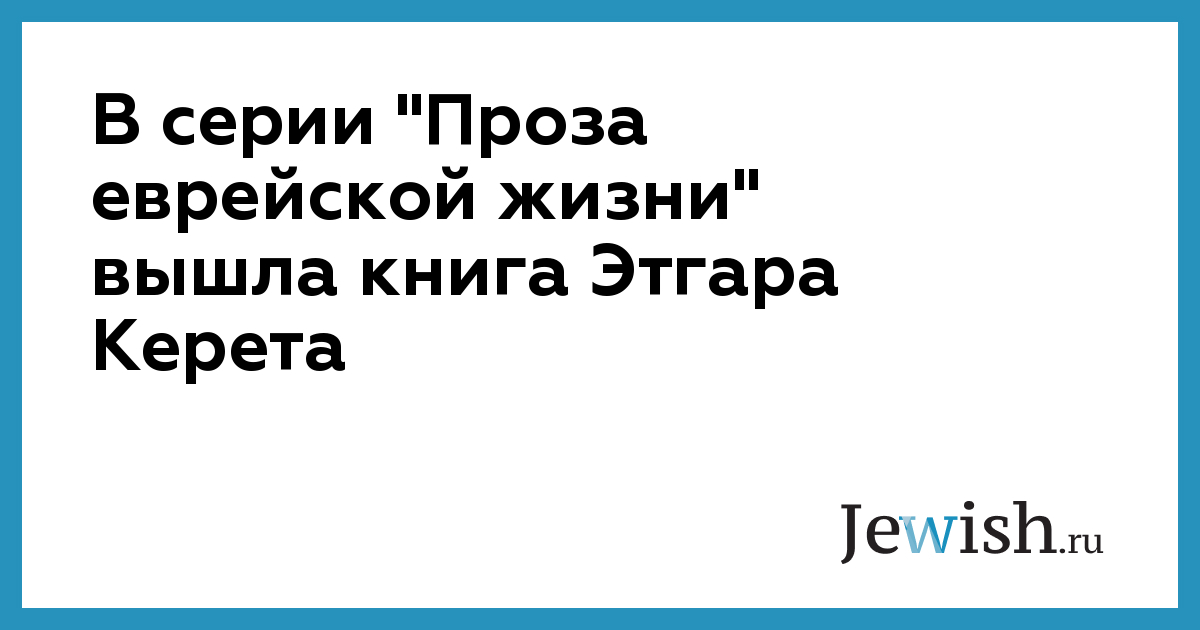 В серии "Проза еврейской жизни" вышла книга Этгара Керета