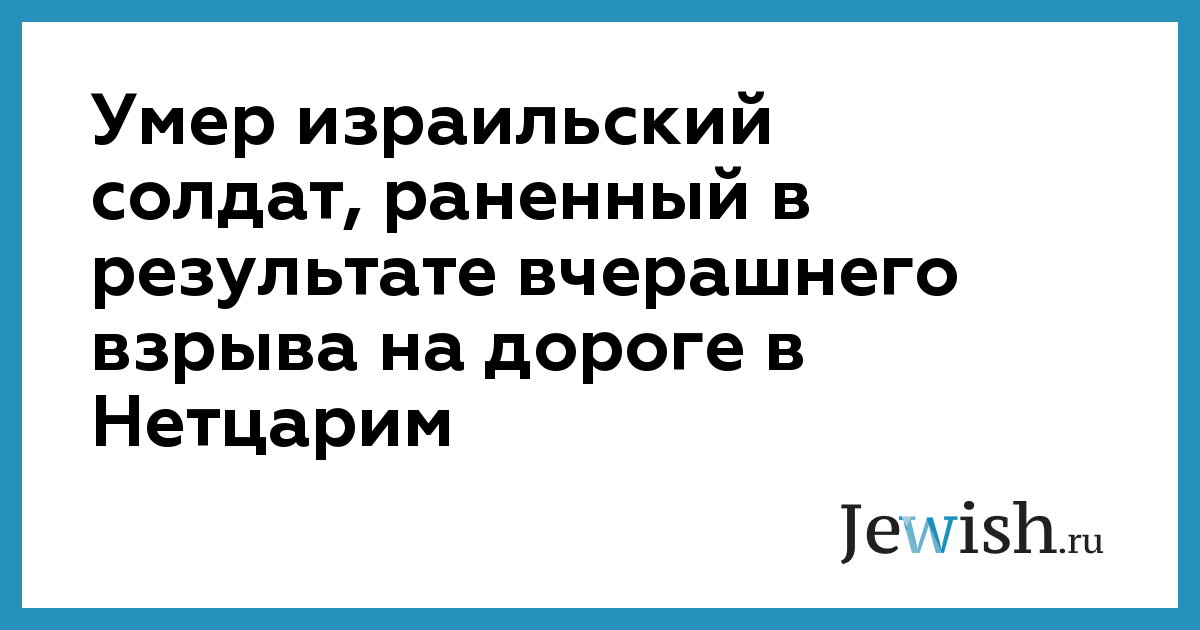 Умер израильский солдат, раненный в результате вчерашнего взрыва на дороге в Нетцарим