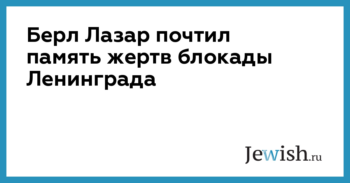 Берл Лазар выразил чувство "самой искренней и глубокой признательности жителям блокадного Ленинграда, всем тем, кто не дожил до прорыва блокады, тем, кто погиб, защищая великий город".